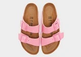 Machen Sie sich bereit für wärmeres Wetter mit diesen Arizona Birko-Flor Sandalen für Damen von Birkenstock. Diese Sandalen in der Farbe Patent Candy Pink haben ein Birko-Flor-Obermaterial mit einer Lackbeschichtung für zusätzlichen Glanz und Haltbarkeit. Sie verfügen über zwei verstellbare Riemen und eine Dornschließe aus Metall für die perfekte Passform. Unter den Füßen sorgt das Wildleder-Fußbettfutter für ein erstklassiges Gefühl, während die anatomisch geformte Kork-Latex- und EVA-Sohle für dauerhaften Komfort und Halt sorgen. Ergänzt mit tonalem Birkenstock-Branding an den Schnallen.