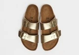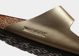 Gehe in dieser Saison mutig vor, wenn du diese Arizona-Sandalen für Damen von Birkenstock wiederholen. Diese klassischen Sandalen in Gold- und Brauntönen haben ein synthetisches Birko-Flor-Obermaterial mit zwei strapazierfähigen Riemen und Dornschnallen für verstellbaren Komfort. Sie sitzen auf einem geformten Kork-Latex-Fußbett mit Wildlederfutter für ein weiches, hochwertiges Tragegefühl. Mit einer gepolsterten EVA-Zwischensohle mit strukturiertem Profil für zusätzlichen Halt sind diese Sandalen mit dem charakteristischen Birkenstock-Branding an den Seitenwänden, Schnallen und dem Fußbett versehen.