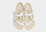Erfrischen Sie Ihre Urlaubsutensilien mit diesen Mayari-Sandalen für Damen von Birkenstock. Diese leichten Sandalen in weißer Farbe haben eine Zehenschlaufe und zwei Riemen aus synthetischem Birko-Flor-Stoff mit Metallschnallen für eine verstellbare Passform. Sie sitzen über einem glatten Wildleder-Fußbettfutter und einem konturierten Kork-Latex-Fußbett für einen strapazierfähigen Schritt. Mit einer weichen und dennoch griffigen EVA-Zwischensohle sind diese Sandalen mit dem charakteristischen Birkenstock-Branding an den Schnallen abgerundet.