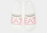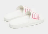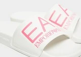 Mit diesen Seaworld Slides für Damen von EA7 kannst du dich am Pool verwöhnen lassen. In einer weißen Farbe sitzen sie auf einer geformten Schaumstoff-Zwischensohle für eine weiche Dämpfung und haben eine griffige Außensohle für die nötige Traktion. Mit einem bequemen Fußriemen, der Ihre Passform sichert, sind sie mit einem pinkfarbenen EA7-Logo versehen.