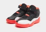 Kultiger Court-Style wird mit diesen Two Trey-Sneakers für Kinder von Jordan verkleinert. In den Farben Schwarz, Weiß und Infrarot 23 haben diese High-Top-Sneaker ein Obermaterial aus hochwertigem Leder und leichtem Textil. Sie verfügen über einen klassischen Schnürverschluss und einen Klettverschluss für einen sicheren Sitz sowie einen gepolsterten Knöchelkragen für ein weiches Tragegefühl. Unter den Füßen sorgt die gepolsterte Zwischensohle für Energie, während die Vollgummi-Außensohle dauerhafte Traktion bietet. Ergänzt mit dem unverkennbaren Jumpman an Riemen und Ferse.