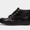 Halten Sie Ihren Look smart und frisch mit diesen Kick Low Padded Sneakers für Kinder von Kickers. Diese Sneaker in schwarzer Farbe sind aus glattem, strapazierfähigem Leder für den täglichen Komfort geschnitten. Sie verfügen über einen Schnürverschluss, um Sie einzuschließen, und einen gepolsterten, tief ausgeschnittenen Kragen für zusätzlichen Halt. Unter den Füßen sitzen sie zur Dämpfung auf einer klobigen Zwischensohle, während die griffige Gummiaußensohle Ihrem Schritt absolute Traktion verleiht. Abgerundet mit dem charakteristischen Kickers-Branding auf der Zunge und den Seitenwänden.