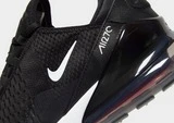 Diese Herren Air Max 270 Sneaker von Nike präsentieren mit ihrem hohen Hacken die nächste Generation Air Max. Inspiriert von den Air Max 180 und Air Max 93, ist dieser Air Max 270 mit einer brandneuen Silhouette ausgestattet. Farblich in Schwarz gehalten, sorgen diese leichten Herren Sneaker mit einem atmungsaktivem Obermaterial aus Textil und Synthetik für puren Komfort. Die Max Air Unit von 32mm und die 270 Grad sichtbare Luftpolsterung übertreffen bisherige Nike Standards und machen diesen Air Max besonders. Abgerundet wird dieser Look mit dem Swoosh Logo auf den Seiten und dem Air 270 Logo auf Schuhzunge und Hacken.