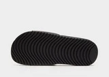 Werte deine Sommerlooks mit diesen Kawa Slides von Nike für Kinder auf. Diese Sandalen in schwarzer Farbe sind mit einem weichen und flexiblen Synthetikriemen für eine ultrabequeme Passform ausgestattet. Sie verfügen über ein Fußbett aus Solarsoft-Schaumstoff und Flex Grooves in der Sohle für ein natürliches Tragegefühl. Mit einem griffigen Profil für Traktion am Pool sind diese Pantoletten mit dem ikonischen Swoosh-Logo am Vorderfuß versehen.