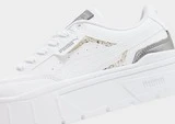 Erhöhen Sie Ihren Stil mit diesen Mayze Stack SQ-Turnschuhen für Damen von PUMA. Diese Kicks sind in einer sauberen weißen Farbgebung mit glitzernden Details gehalten und aus einem Obermaterial aus Leder geschnitten, um Strapazierfähigkeit und dauerhaften Komfort zu gewährleisten. Sie verfügen über einen Schnürverschluss mit einem niedrig geschnittenen, gepolsterten Knöchelkragen, um Sie einzuschließen, und sitzen auf einer klobigen, aber leichten Zwischensohle für ganztägige Dämpfung. Mit einer Gummi-Außensohle für Traktion sind sie durchgehend mit dem PUMA-Branding versehen.