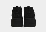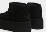 Halten Sie es in dieser Saison in diesen Classic Ultra Mini Plateaustiefeln für Damen von UGG gemütlich. In einer schwarzen Farbgebung haben diese Stiefel ein hochwertiges Wildlederobermaterial mit einem UGG-Plüschfutter, das Upcycling-Wolle für ein super bequemes Tragegefühl verwendet. Sie haben einen Slip-On-Stil und sitzen auf einer 2-Zoll-Plateau-Zwischensohle, die die umweltfreundliche SugarSole-Technologie von UGG für Komfort verwendet. Sie sitzen auf einer strukturierten Außensohle für Traktion und sind mit einer Fersenlasche aus Leder und dem charakteristischen UGG-Branding versehen.