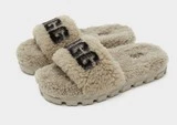 Verleihen Sie Ihrem Kleinen den ultimativen Sommerlook mit diesen Fluff Yeah Slides für Kinder von UGG. In einer schwarzen Farbe haben diese Sandalen ein super kuscheliges Schaffellobermaterial mit einem einzigen Fußriemen für einen einfachen Einschubstil. Sie haben ein weiches Schaffellfutter und eine klobige, aber leichte Zwischensohle unter den Füßen. Mit einem Gummiprofil für Traktion sind sie mit einem UGG-Slingback-Gurt versehen, der sie festhält.